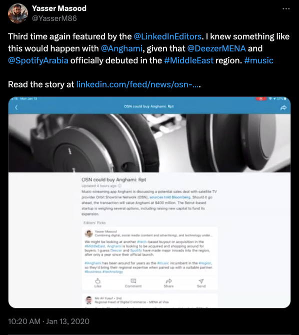 What a way to start off 2020 by sharing potential news that Anghami was looking to be sold or acquired, given that their international competitors Deezer and Spotify have made significant inroads into the Middle East region.