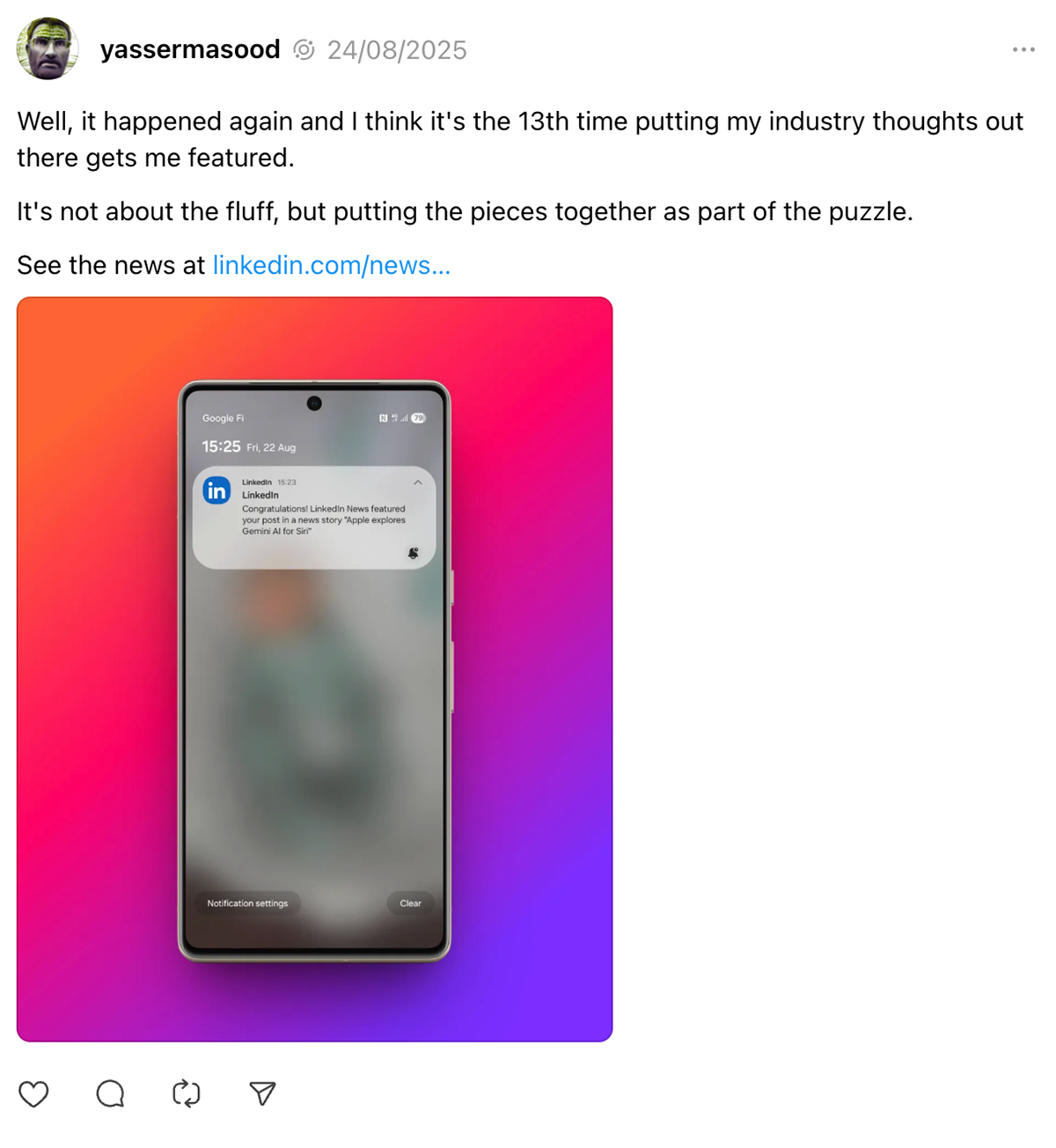 That caught the attention of the LinkedIn News team, featuring my post alongside many others.